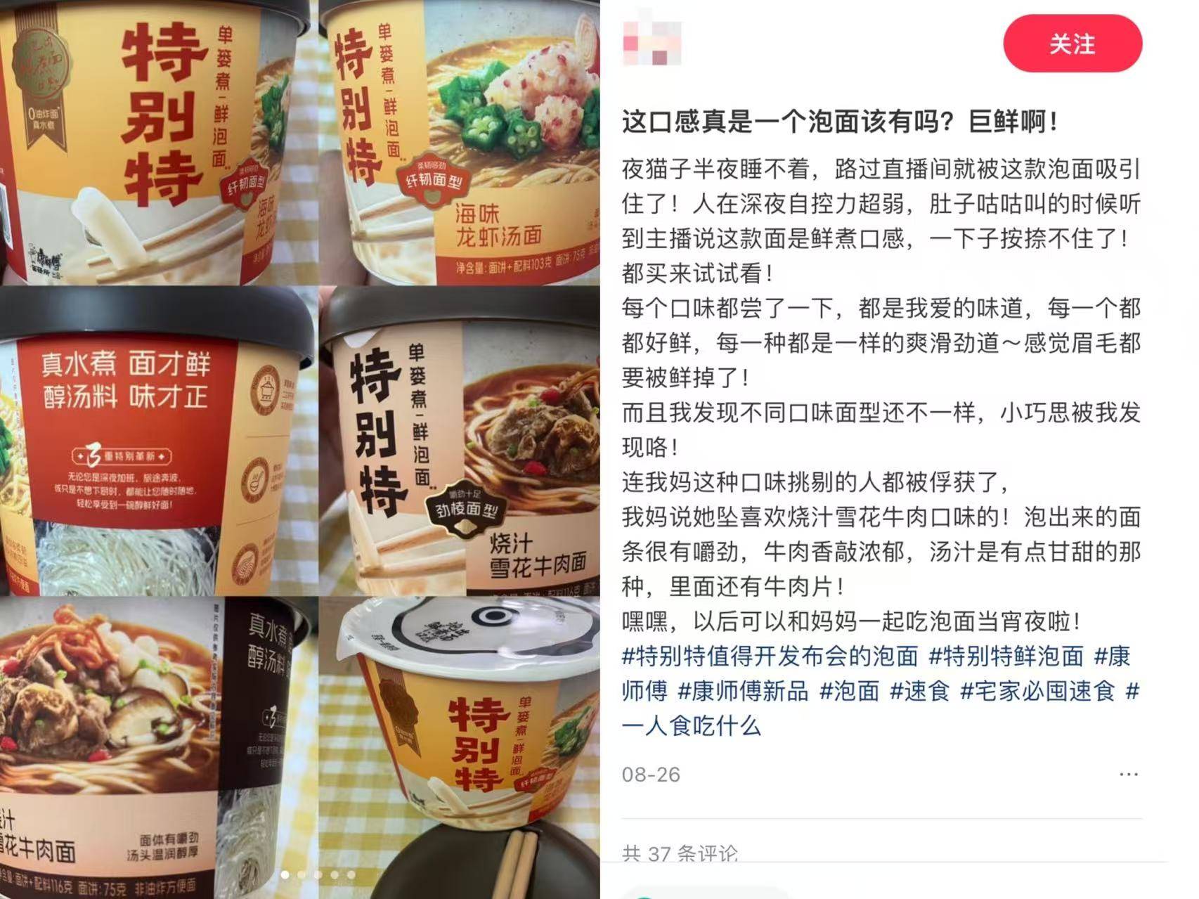(图为康师傅特别特鲜系列产品,图片来源:小红书)