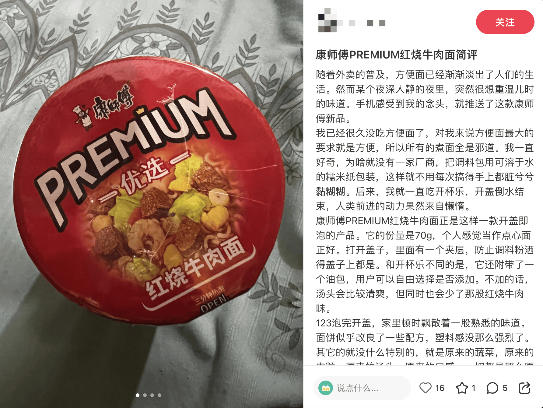 (图为康师傅PREMIUM优选杯,图片来源:小红书)