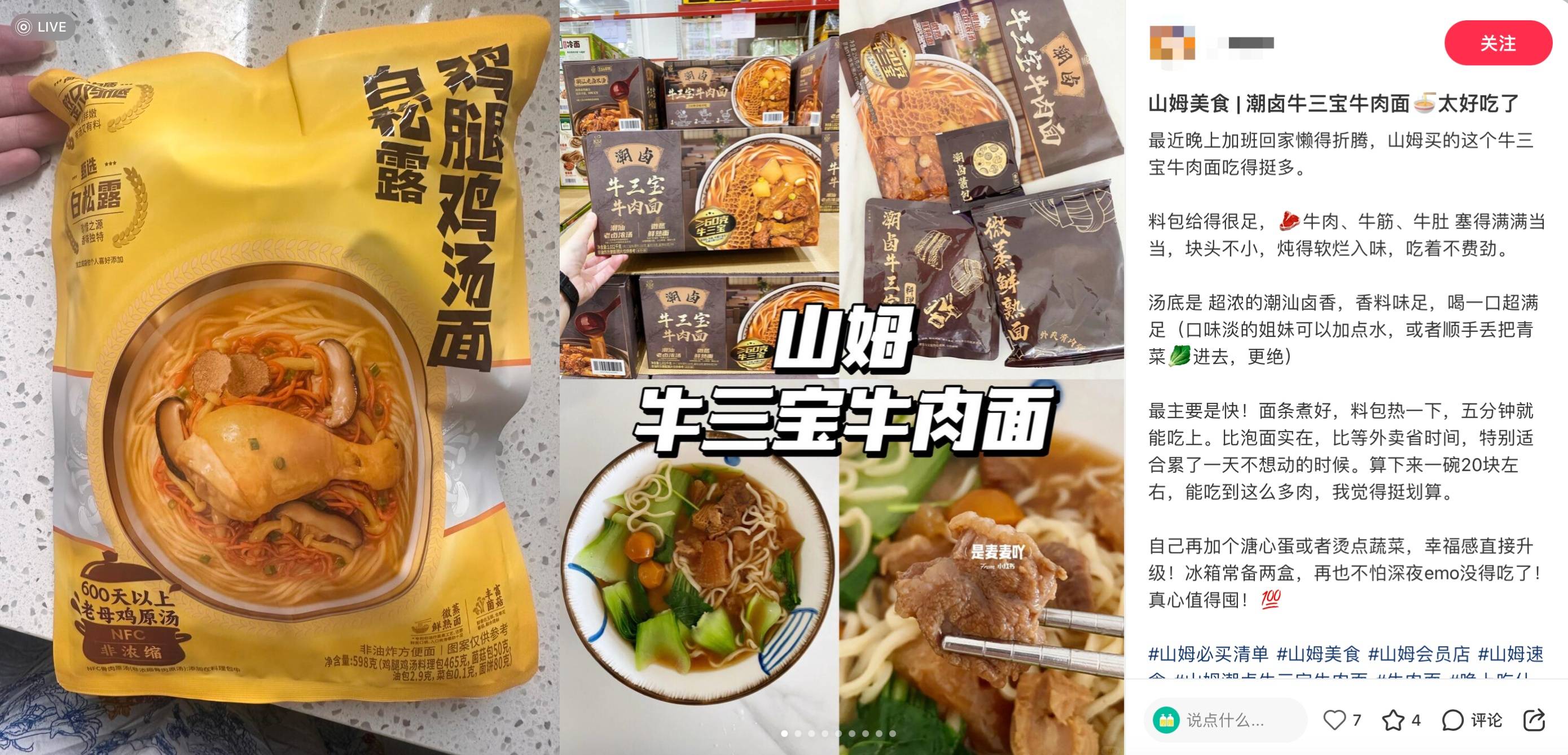 (图为康师傅白松露鸡腿鸡汤面、潮卤牛三宝牛肉面,图片来源:小红书)