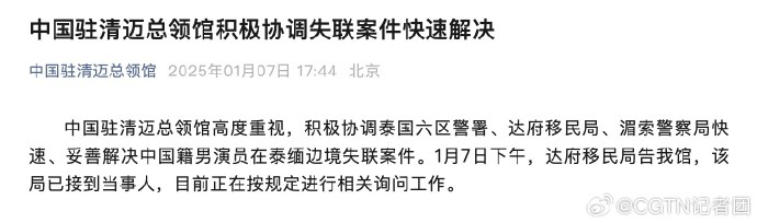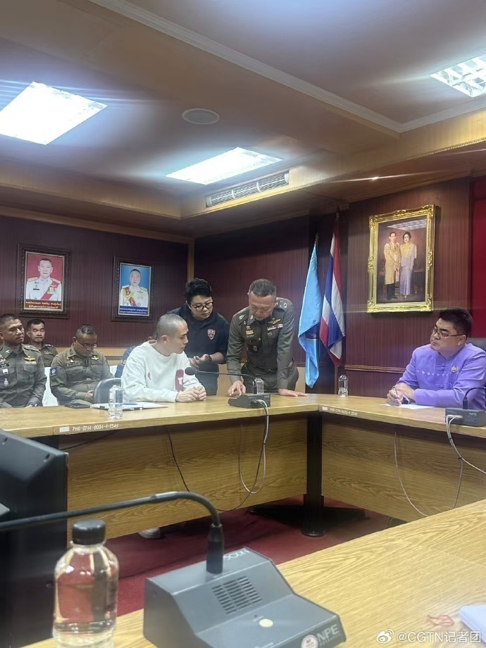 据@CGTN记者团消息,据CGTN前方报道员消息,演员星星已被接到泰国。中国驻清迈总领馆表示,达府移民局告知总领馆,该局已接到当事人,目前正在按规定进行相关询问工作。(图片来源:泰国陆军拉差玛努特别任务部队)
